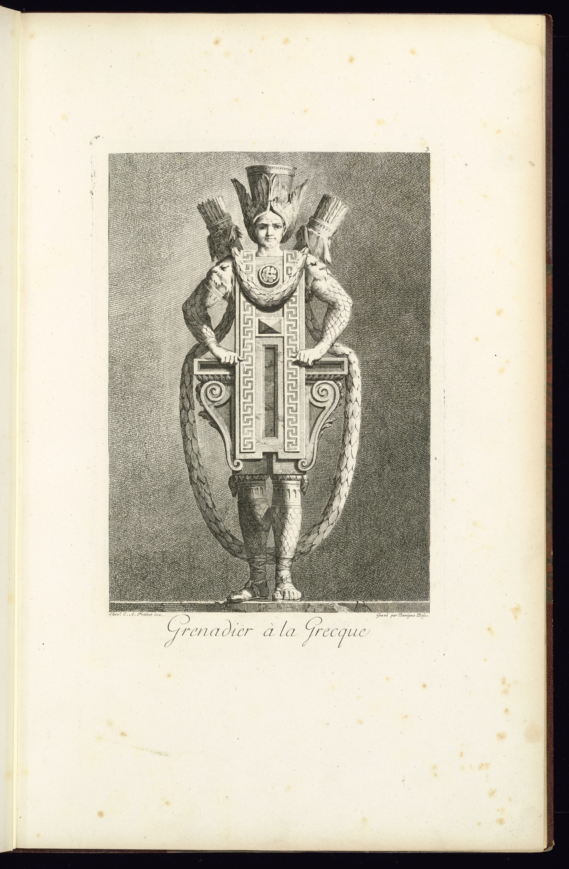 Print, Grenadier à la Grecque; Print Maker: Benigno Bossi (Parma, 1727–ca. 1793); After Eurimond-Alexandre Petitot (Parma, 1727–1801); France; etching on paper; Purchased for the Museum by the Advisory Council; 1921-6-471-3