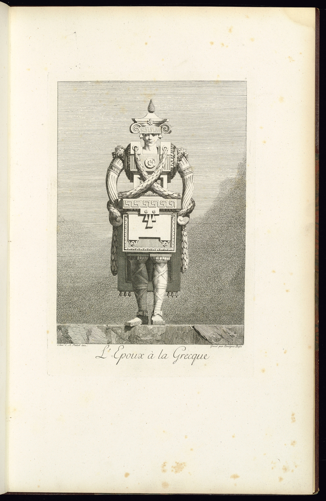 Print, L’Epoux à la Grecque; Print Maker: Benigno Bossi (Parma, 1727–ca. 1793); After Eurimond-Alexandre Petitot (Parma, 1727–1801); France; etching on paper; Purchased for the Museum by the Advisory Council; 1921-6-471-7