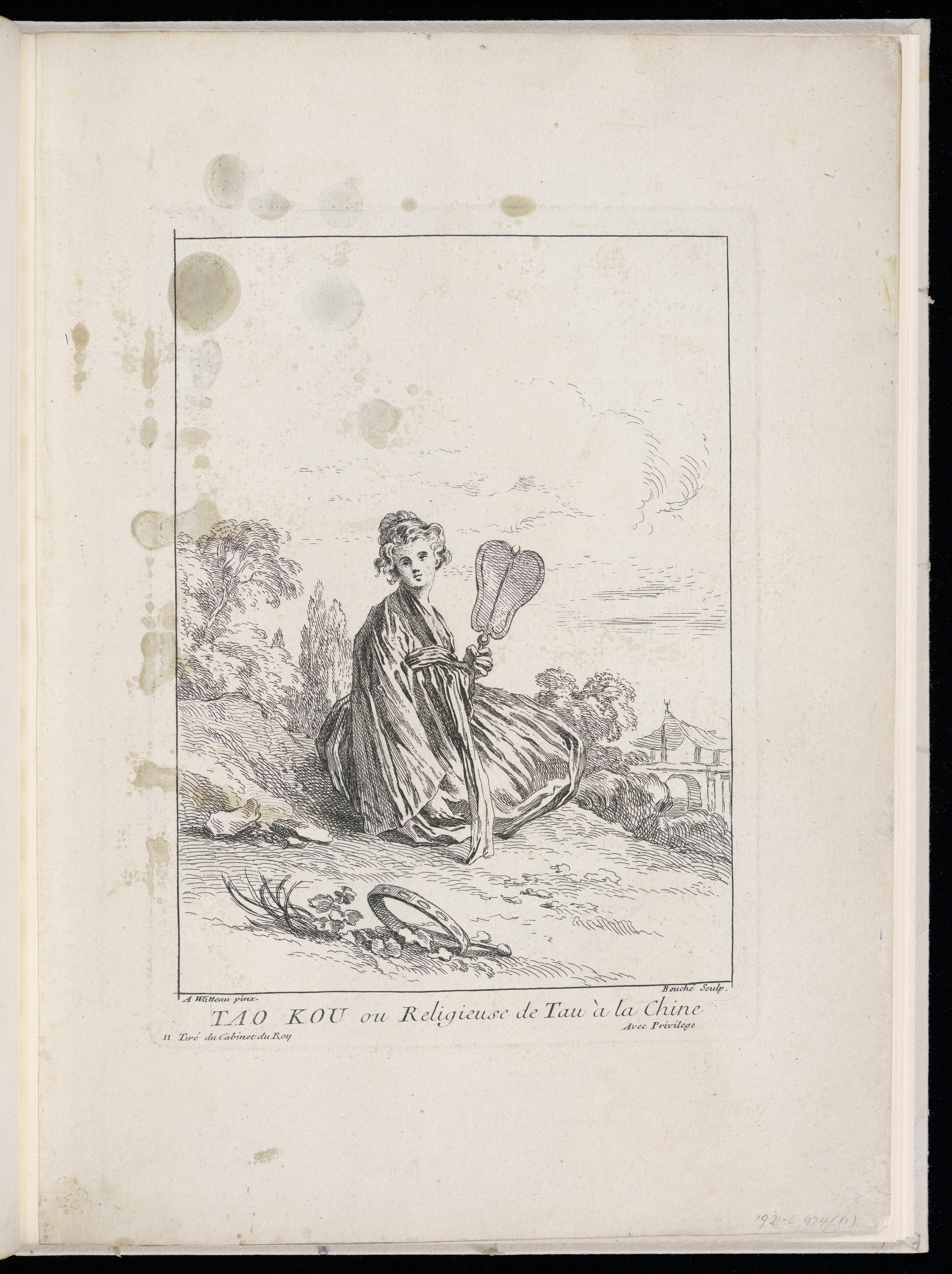 Lettered in plate, lower center: TAO KOU ou Religieuse de Tau à la Chine; numbered in plate, lower left 11; lettered lower left: Tiré du Cabinet du Roy; lettered lower right: Avec Privilege; inscribed in graphite lower right margin: 1921-6-414(11)