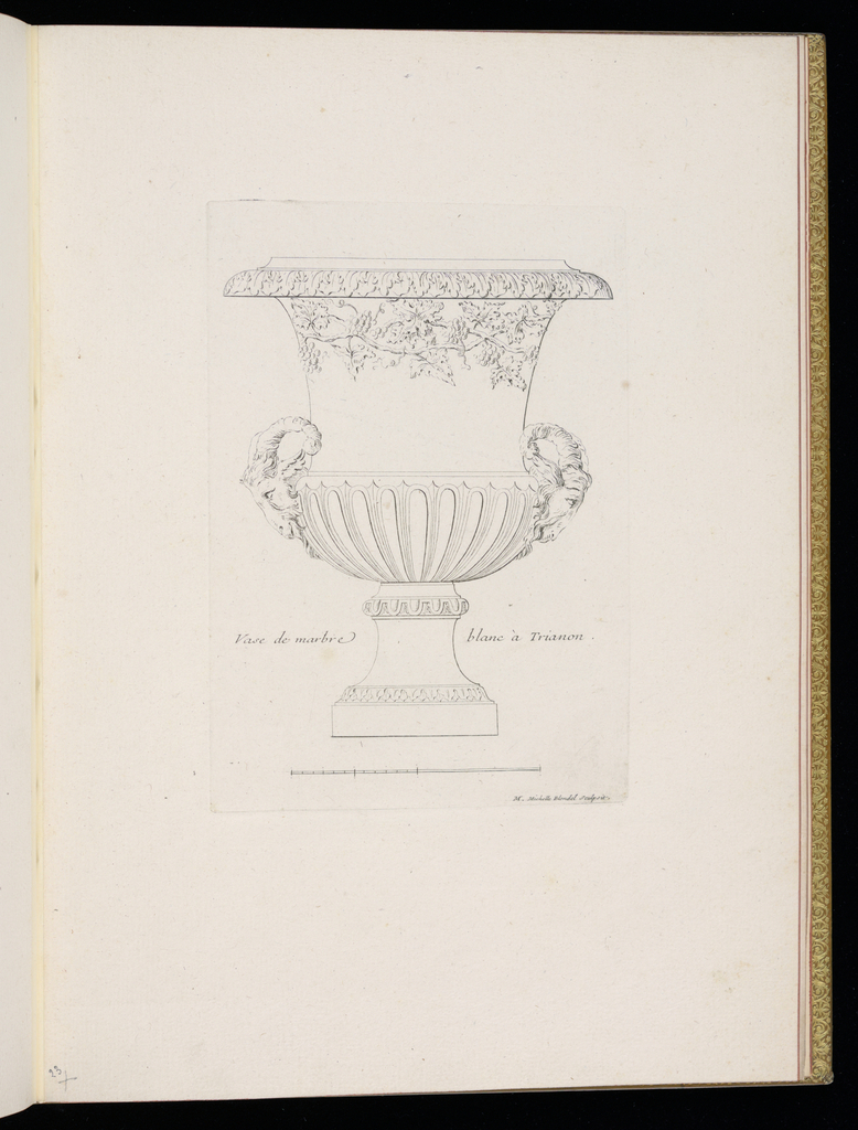 Lettered in plate, lower left and right of design: Vase de marbre blanc à Trianon