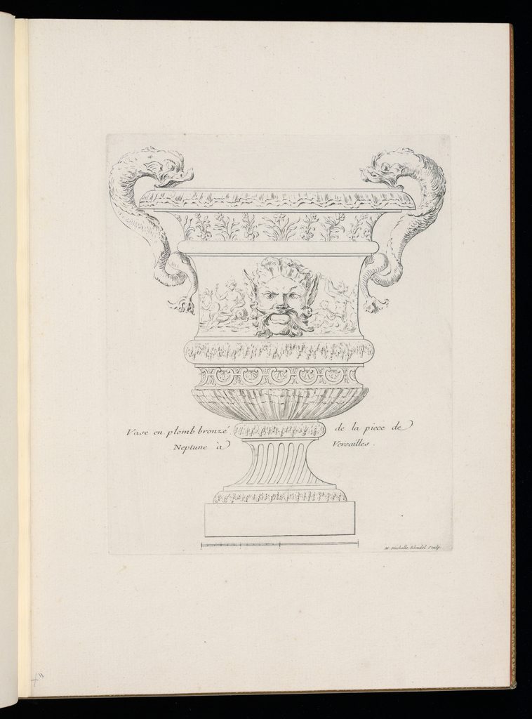 Lettered in plate, lower left and right of design: Vase en plomb bronzé de la piece de Neptune à Versailles