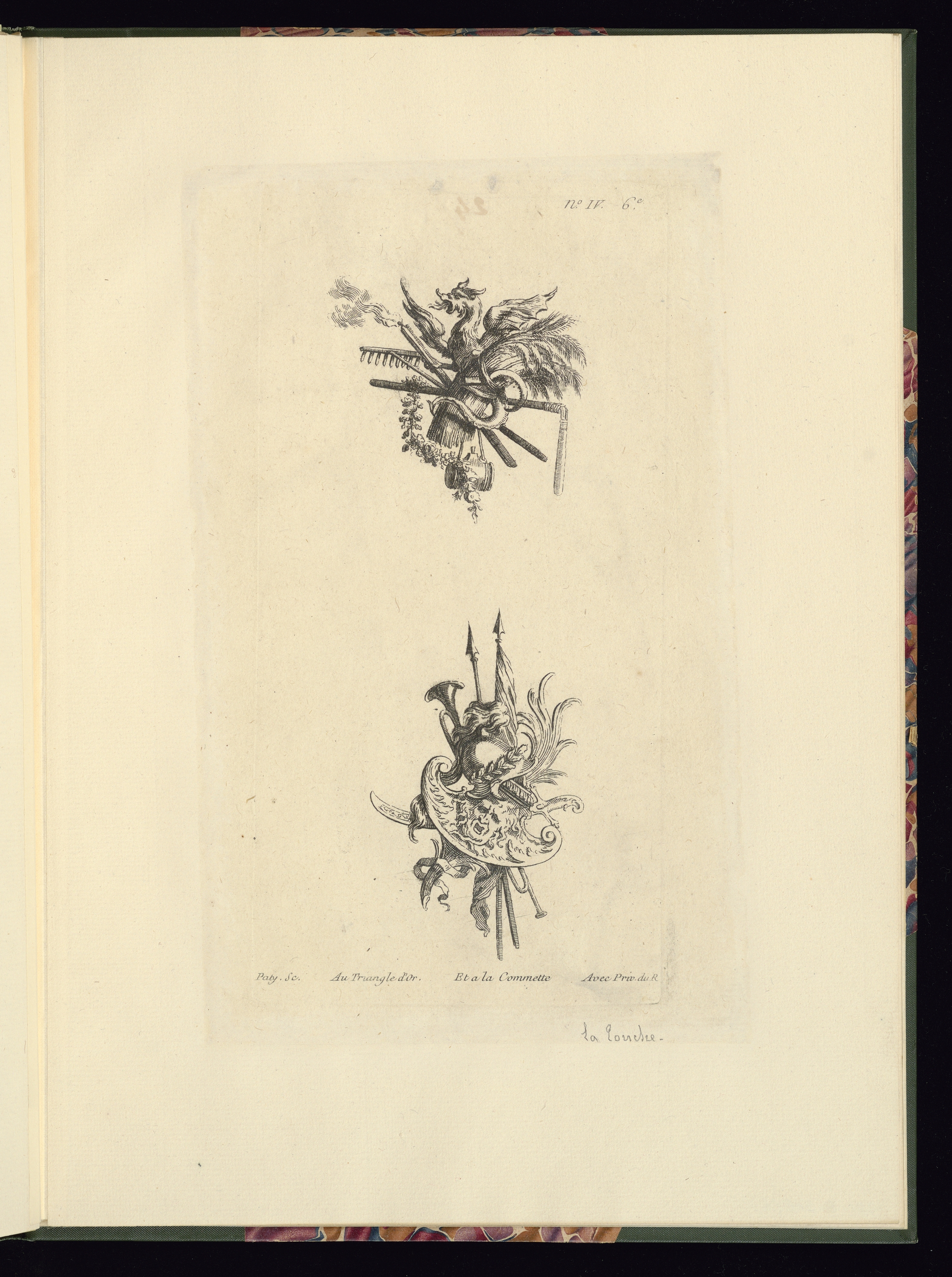 Numbered in plate, upper right corner: No. IV. 6e; inscribed in graphite lower right along plate margin: La Touche