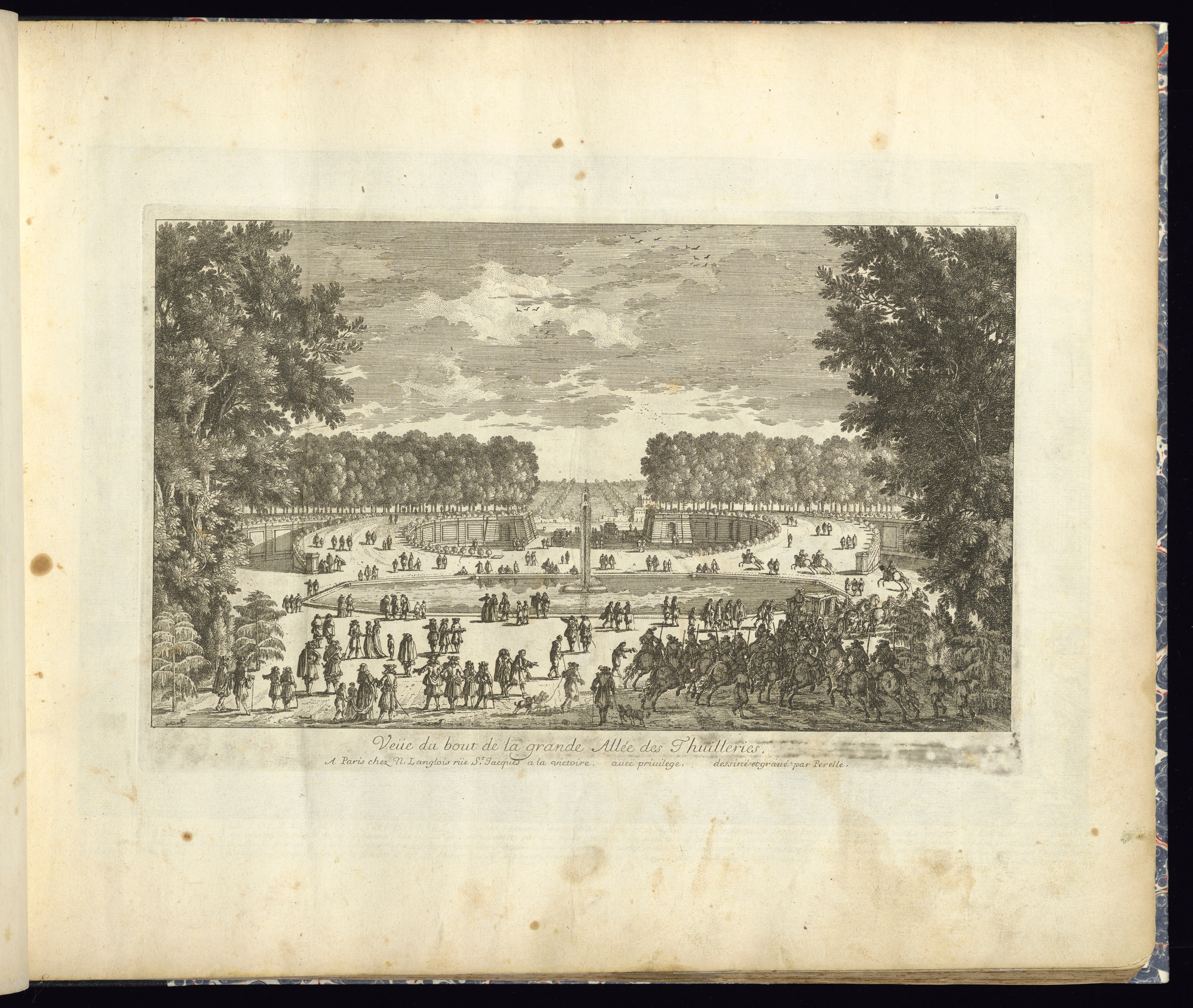 Lettered in plate, lower center: Veüe du bout de la grande Allée des Thuilleries.