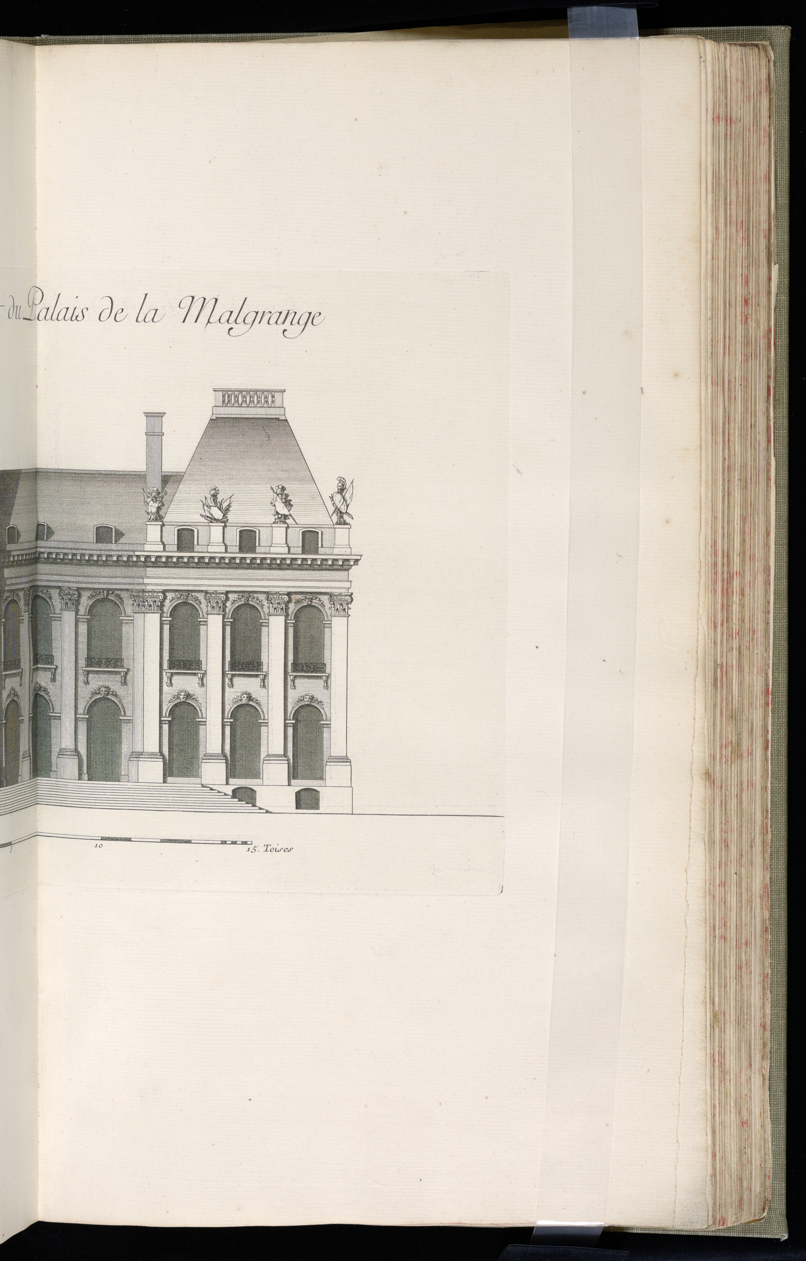 This is a Bound print. It was designed by Germain Boffrand and published by Guillaume Cavalier Père and engraved by Jacques-François Blondel and Pierre François Tardieu and collaborator: François Boucher. It is dated 1745 and we acquired it in 1920. It is a part of the Drawings, Prints, and Graphic Design department.