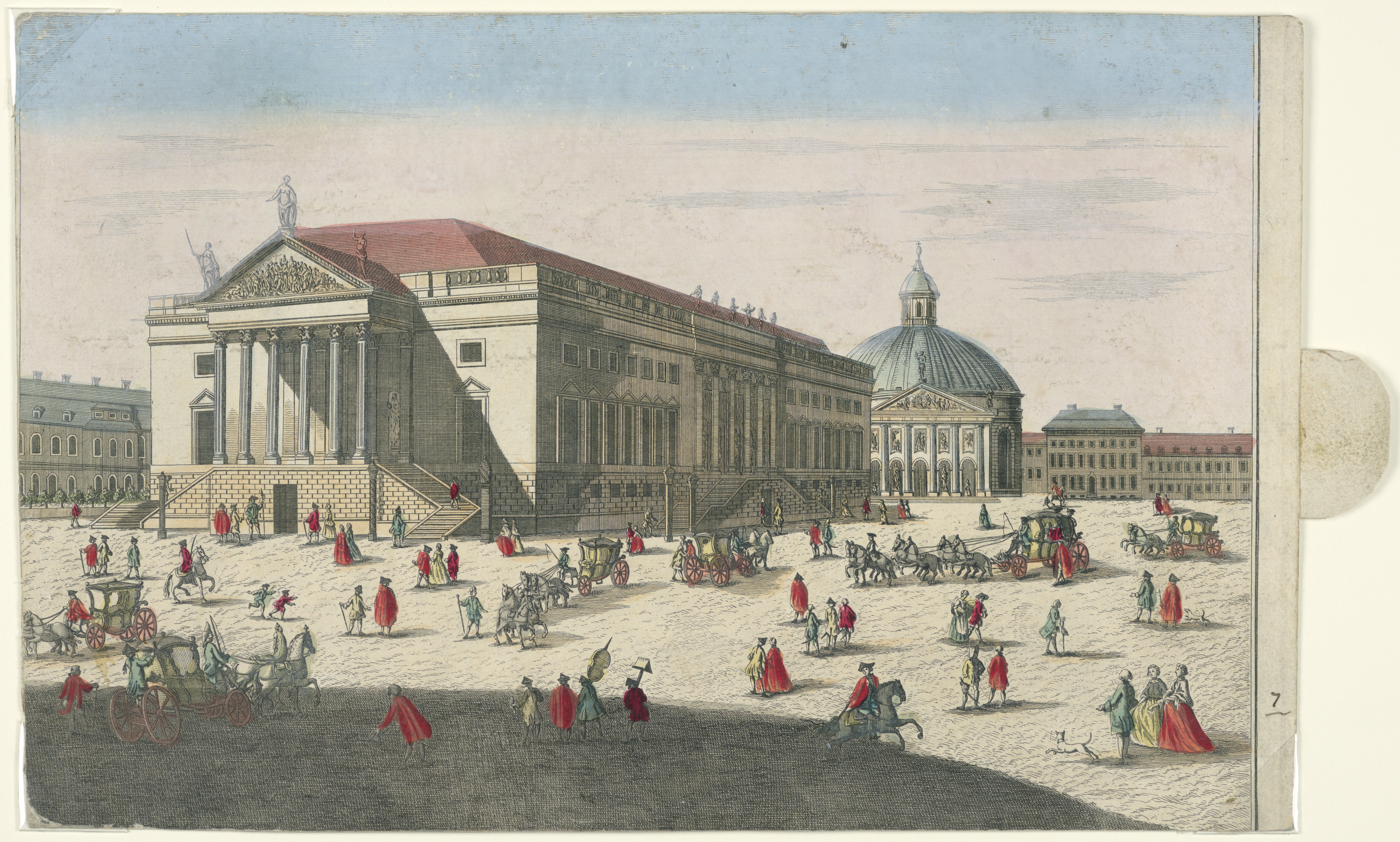 Print, The Opera House and the Church of St. Hedwig, Berlin; hand-colored etching on paper; H x W: 27.6 × 42.8 cm (10 7/8 × 16 7/8 in.); Gift of Eleanor and Sarah Hewitt; 1923-22-85