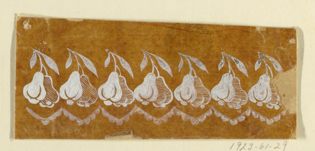 Drawing, Design for a Woven or Embroidered Horizontal Border, of the "Fabrique de St. Ruf"; Designed by Fabrique de Saint Ruf; France; brush and gouache on glazed tracing paper, laid down on paper; Design: 3.1 × 4.8 cm (1 1/4 × 1 7/8 in.) Paper: 3.1 × 11.1 cm (1 1/4 × 4 3/8 in.); 1923-61-29