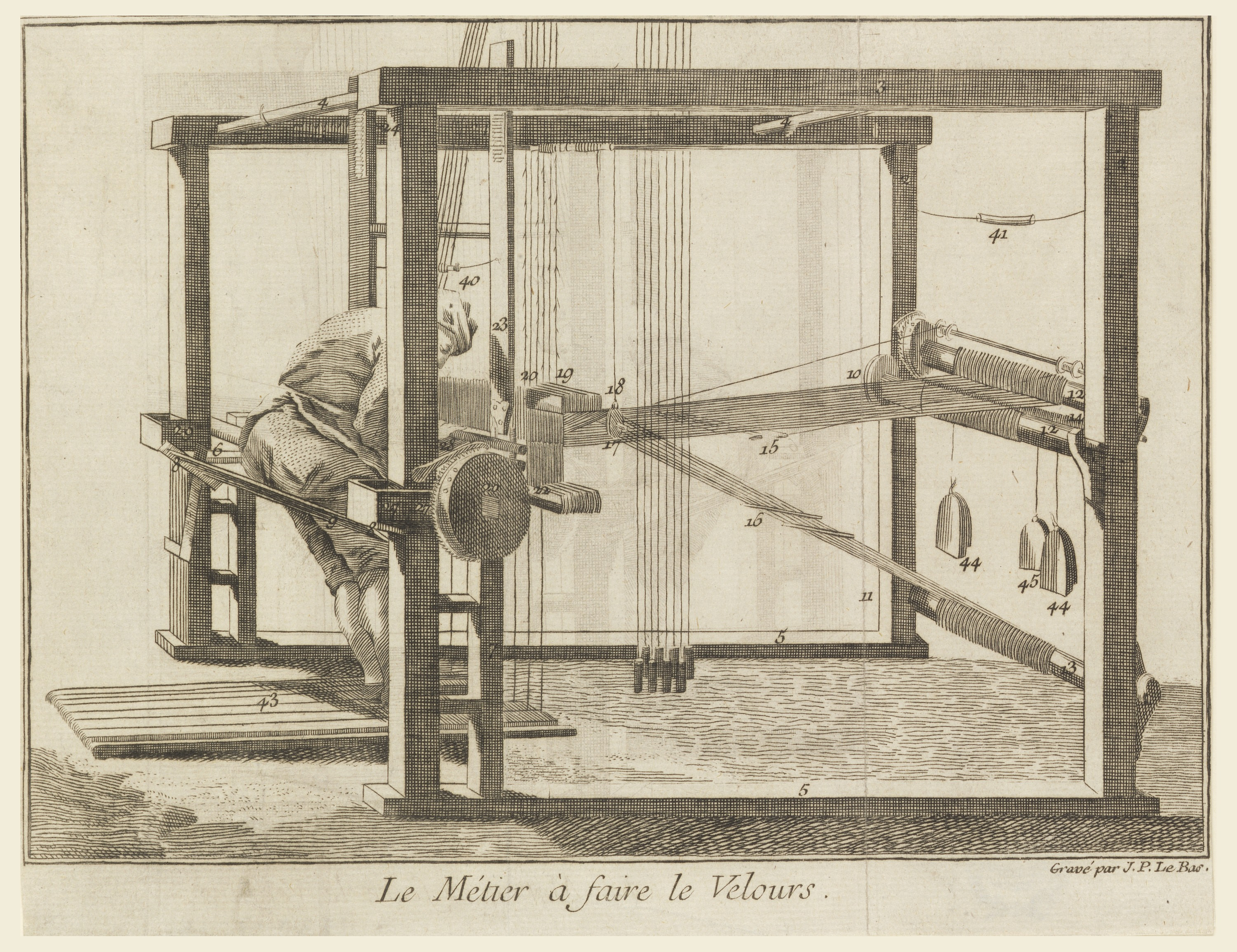 <ref name=CH>{{cite web |url=https://www-5.collection.cooperhewitt.org/objects/18302531/ |title=Print, Le Métier à faire le Velours (The Velvet Loom) |author=Cooper Hewitt, Smithsonian Design Museum |accessdate=19 December 2025 |publisher=Smithsonian Institution}}</ref>