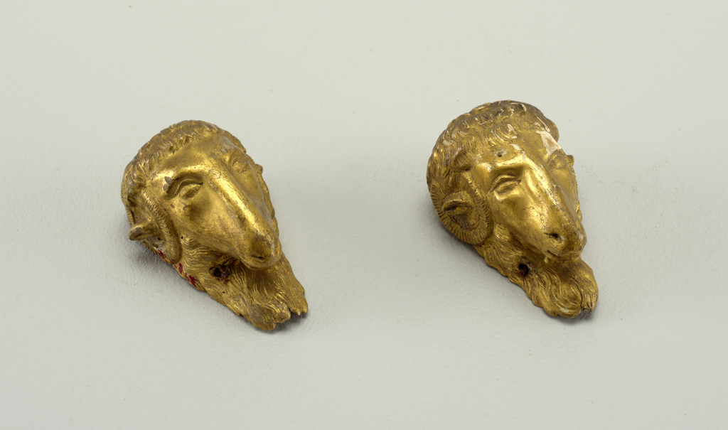 Mascaron (France); wood, gesso, gilded; H x W x D (a): 5.5 x 3 x 3 cm (2 3/16 x 1 3/16 x 1 3/16 in.) H x W x D (b): 5.5 x 3.5 x 3 cm (2 3/16 x 1 3/8 x 1 3/16 in.); Purchased for the Museum by the Advisory Council; 1925-1-372-a,b