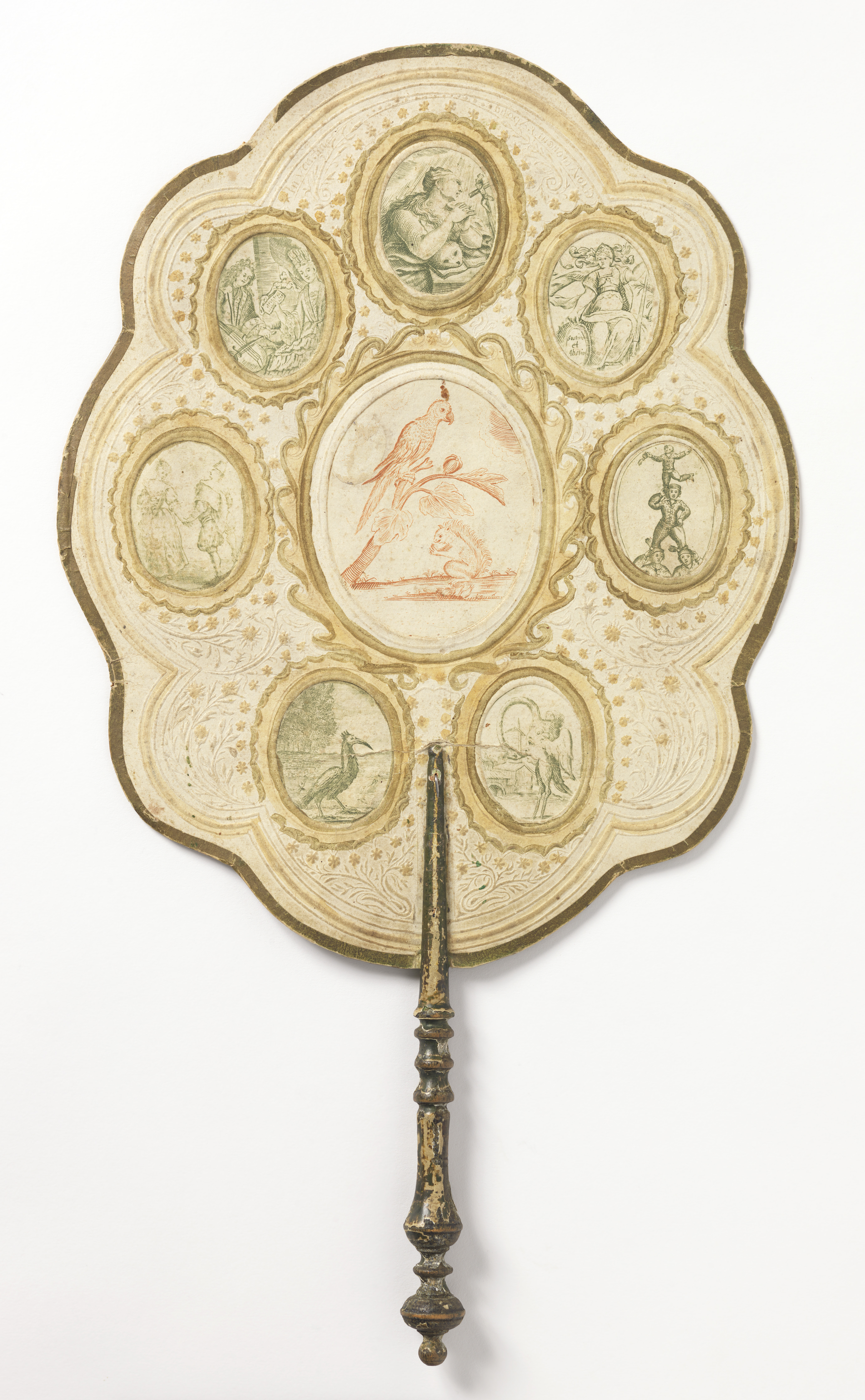 Handscreen (Italy); engraved paper leaf, turned and painted wood handle ; H x W: 26 x 47 cm (10 1/4 x 18 1/2 in.); Purchased for the Museum by the Advisory Council; 1925-1-62