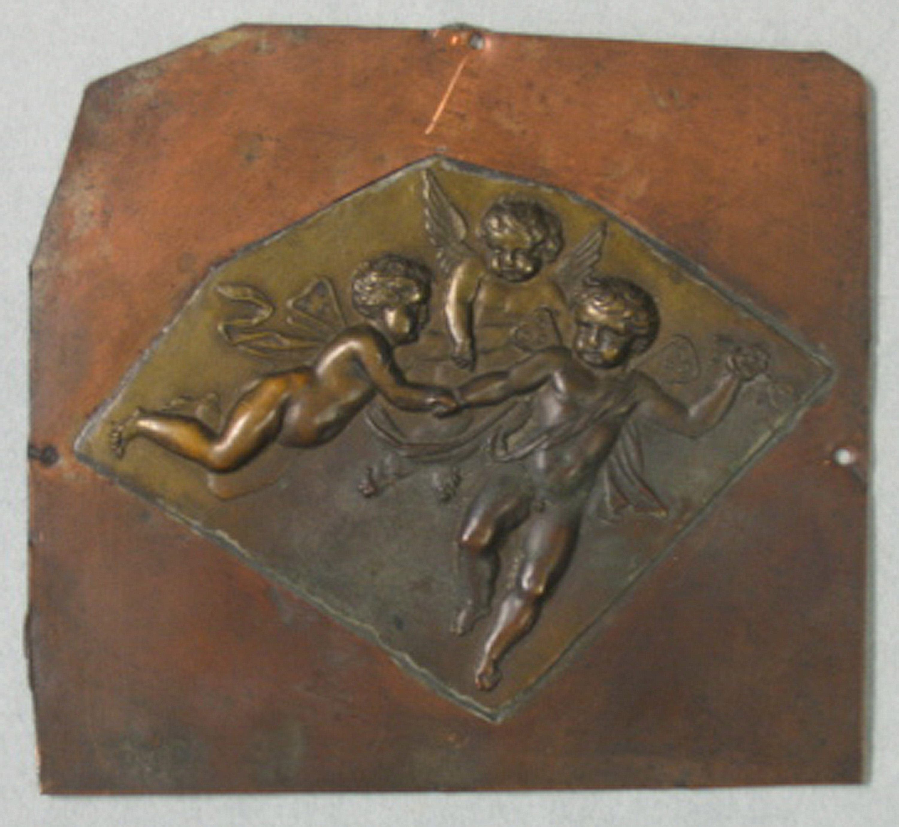 Mount; brass, copper; H x W x D: 7.4 x 8.3 x 0.3 cm (2 15/16 x 3 1/4 x 1/8 in.); Gift of Mary A. Peoli; 1925-3-9