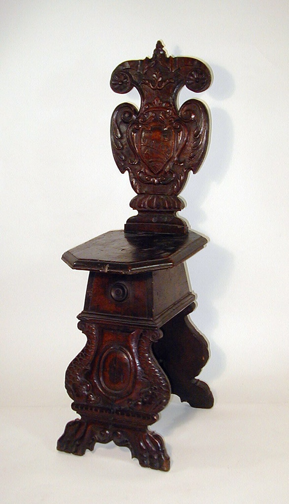 Sgabello Side Chair; Italy; carved walnut wood; H x W x D: 102 x 30.5 x 40.5cm (40 3/16 x 12 x 15 15/16in.); Gift of Charles W. Gould; 1926-11-12