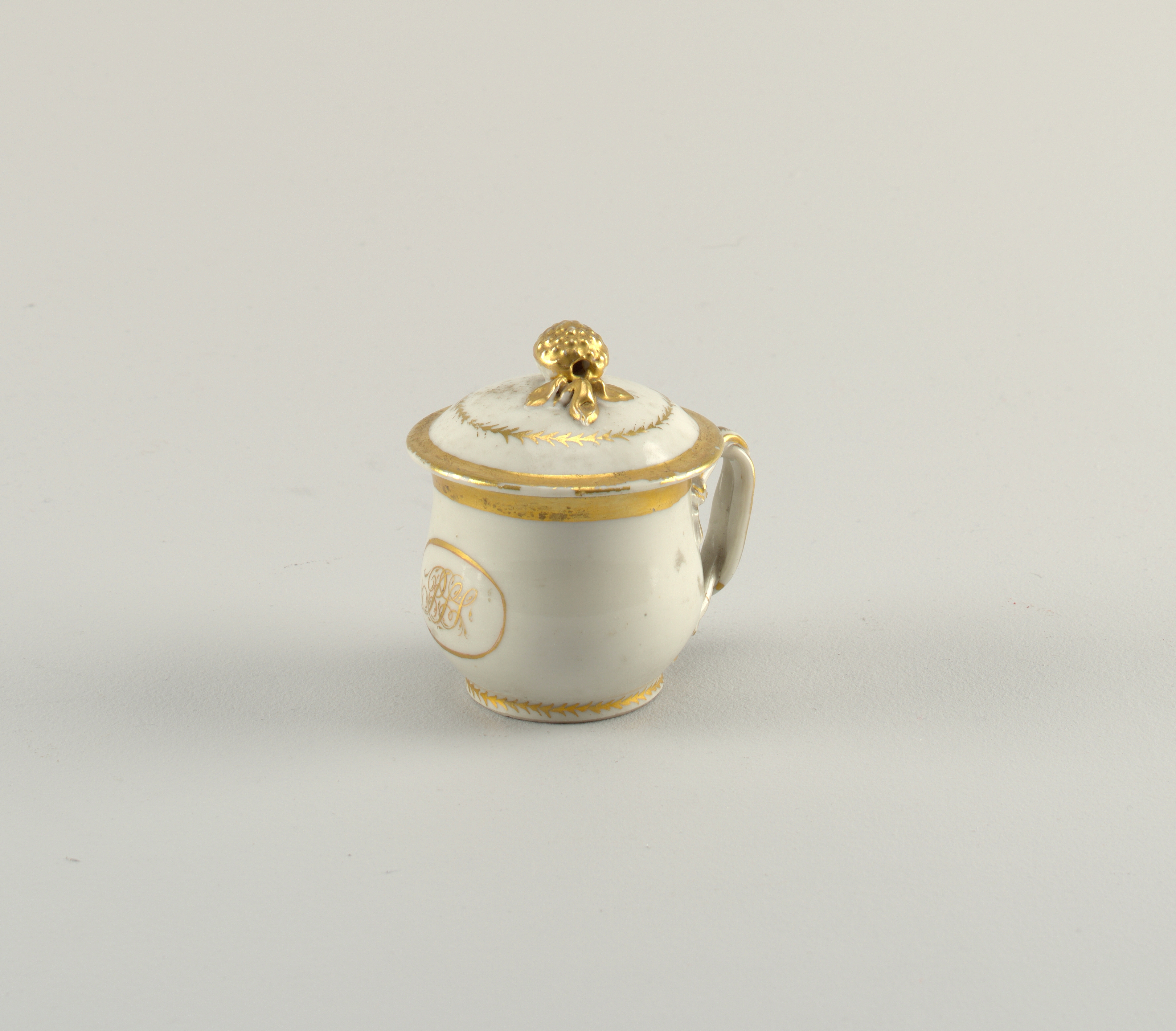 Covered Cup Cup; porcelain, gold; H x W x D: 8.5 x 9 x 7.4 cm (3 3/8 x 3 9/16 x 2 15/16 in.); Bequest of Mrs. John Innes Kane; 1926-22-151-a,b