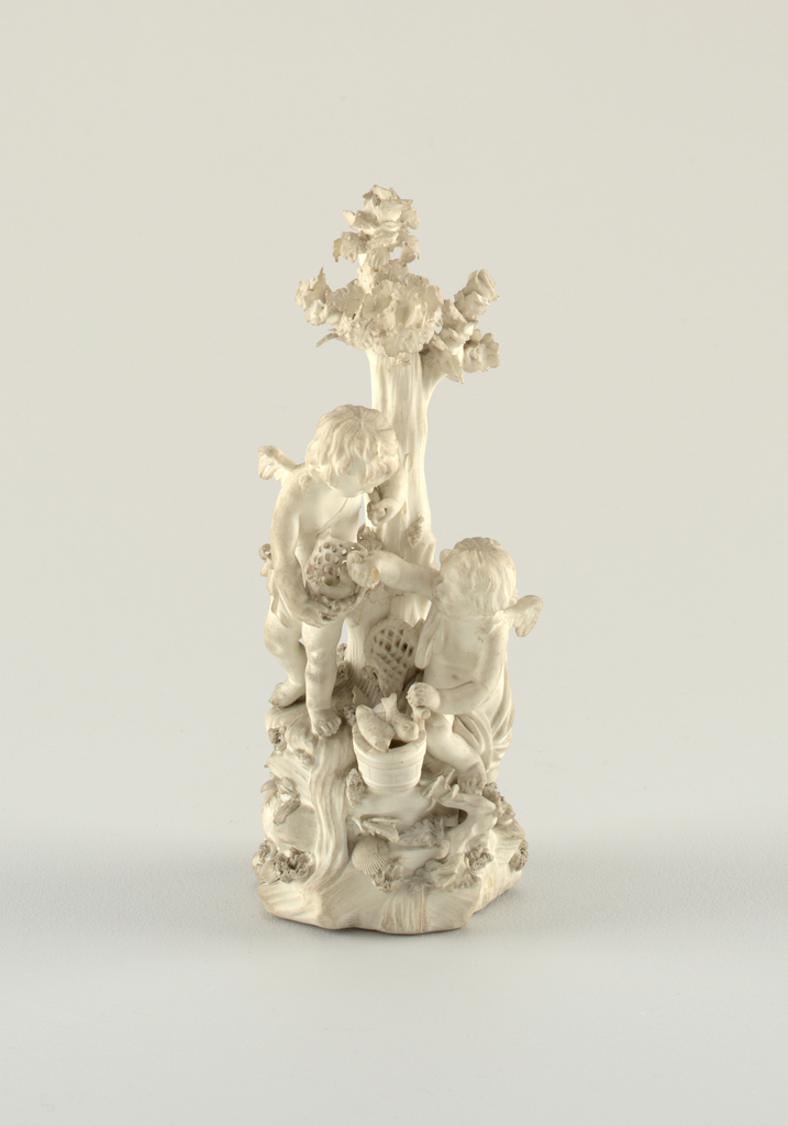 Figural Group of Cupids Fishing Representing Water, from a Group Called "The Elements" (One of a Pair) Figure; Model maker: John James Spangler (English); Modeled by Johann Jakob Wilhelm Spängler (Swiss, 1755 - after 1795); Made by Joseph Hill (England); Manufactured by Derby Porcelain Factory (England, GB, United Kingdom); biscuit; H x W x D: 22 x 9 x 8 cm (8 11/16 x 3 9/16 x 3 1/8 in.); Bequest of Mrs. John Innes Kane; 1926-22-523