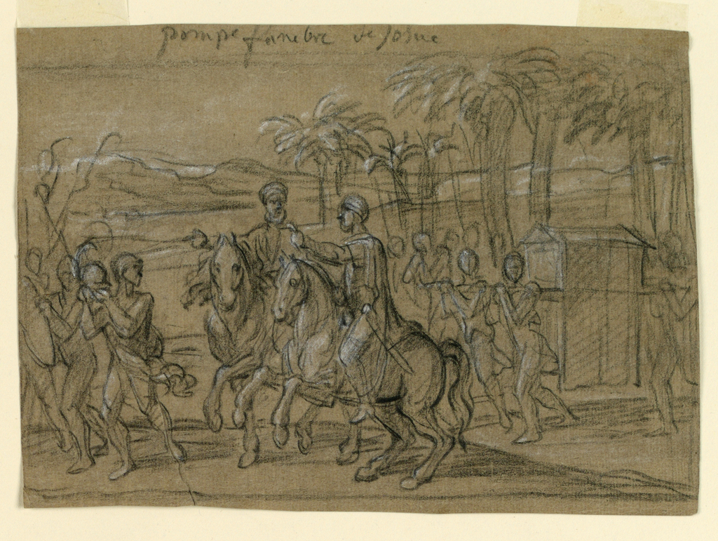 Drawing, The Burial of Joshua; France; black crayon, white heightening on brown paper; 14 × 19.4 cm (5 1/2 × 7 5/8 in.); Gift of Eleanor and Sarah Hewitt; 1931-64-104