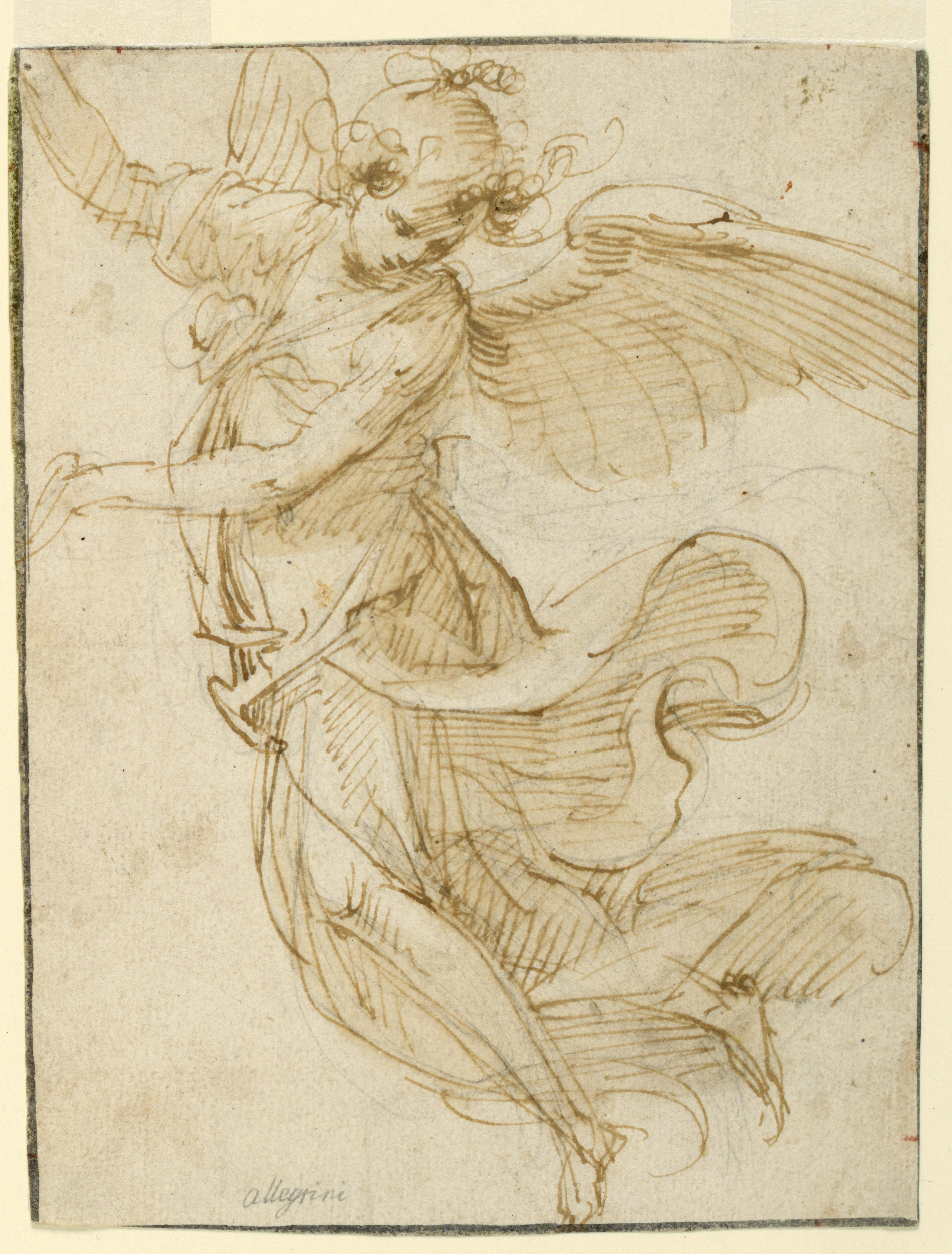 Drawing, Angel; Francesco Allegrini; Italy; red crayon on paper; 19.6 × 15 cm (7 11/16 × 5 7/8 in.); Gift of Eleanor and Sarah Hewitt; 1931-64-269