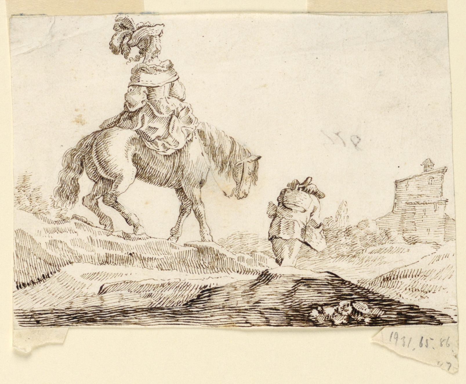 Drawing, In the Country; Nicolaes Berchem (Dutch, 1620–1683); Netherlands; black chalk, pen and ink on paper; 9.1 × 13 cm (3 9/16 × 5 1/8 in.); Gift of Eleanor Garnier Hewitt; 1931-65-86