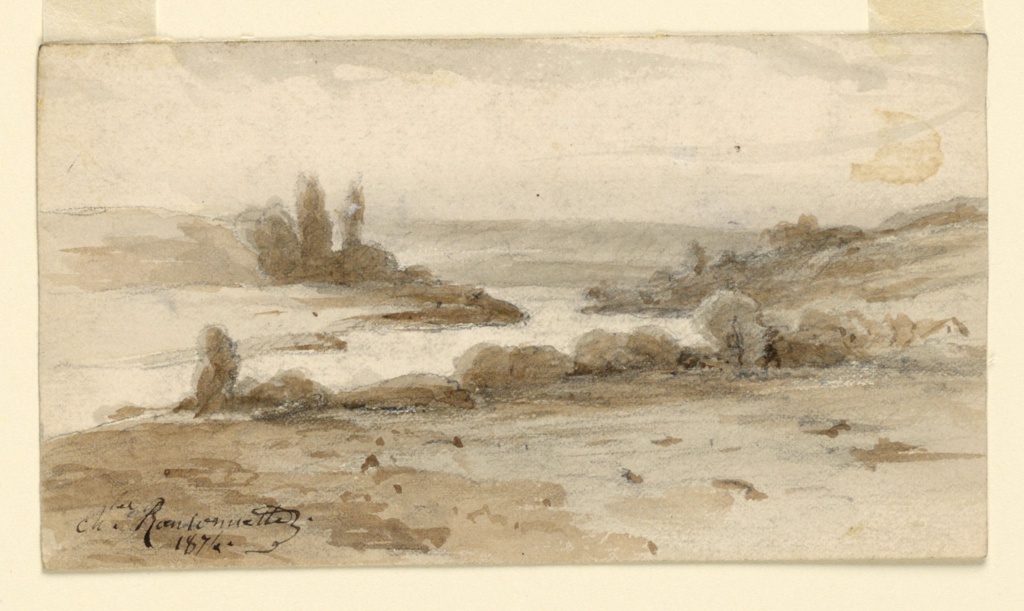 Written with ink in the lower left corner: "Chles Ransonnette/1874" and at the reverse. "Souvenir par Chles Ransonnette Aout 1874/Malade"; "M R" was written upon a mounting cardboard.