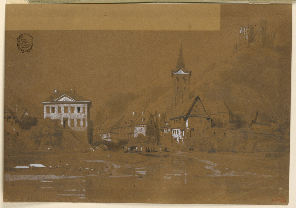 Drawing, Wellmiche, Rhineland; Eugène Edouard Soulès (French, 1811–1876); France; black crayon, brush and wash, brush and white gouache on brown paper; 19.4 × 27.7 cm (7 5/8 × 10 7/8 in.); Gift of Eleanor and Sarah Hewitt; 1931-73-199