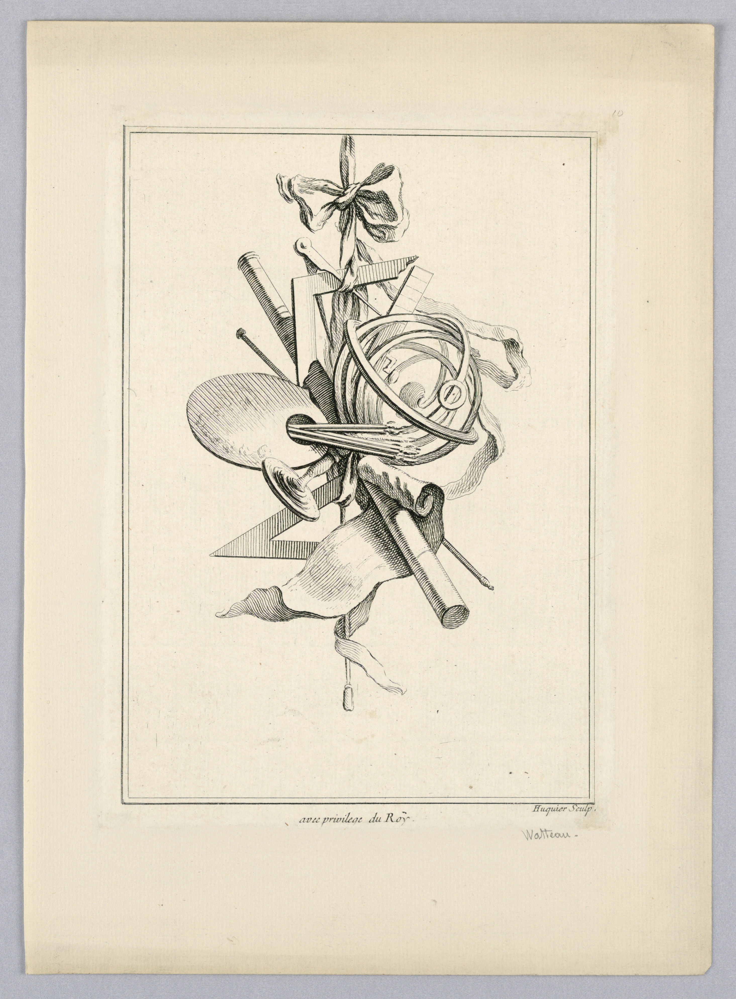 Print, Trophy; Print Maker: Gabriel Huquier (French, 1695–1772); After Antoine Watteau (French, 1684 – 1721); etching on paper; Gift of Eleanor and Sarah Hewitt; 1931-94-553
