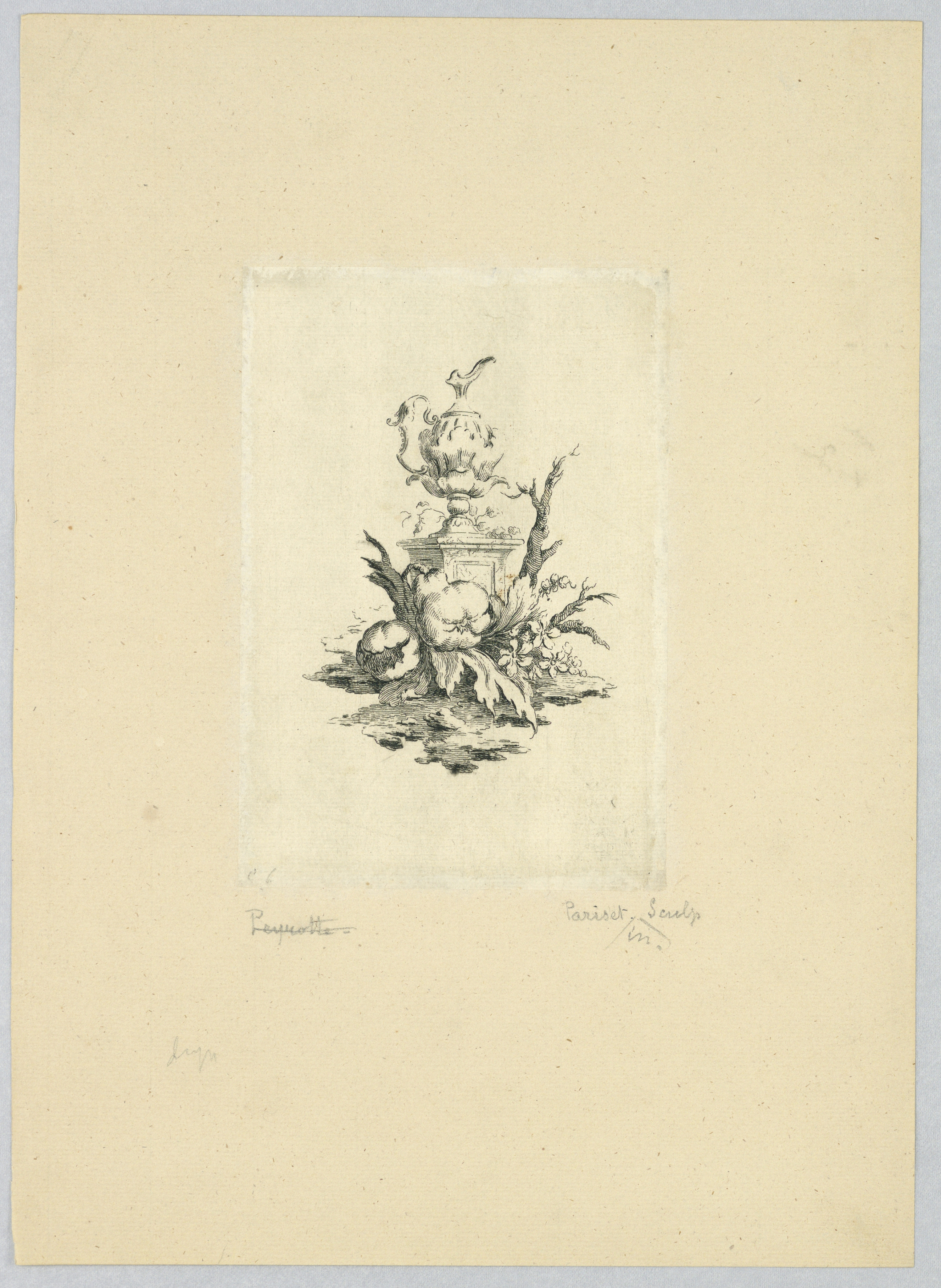Print, Vignette with Gourds and a Ewer on a Pedestal; Print Maker: D. P. Pariset (French, 1740 - ca. 1783); engraving on paper; Gift of Eleanor and Sarah Hewitt; 1931-94-676