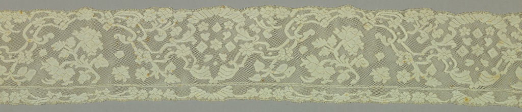 This is a Border. It is dated 18th century and we acquired it in 1933. Its medium is linen and its technique is bobbin lace, valencienne ground. It is a part of the Textiles department.