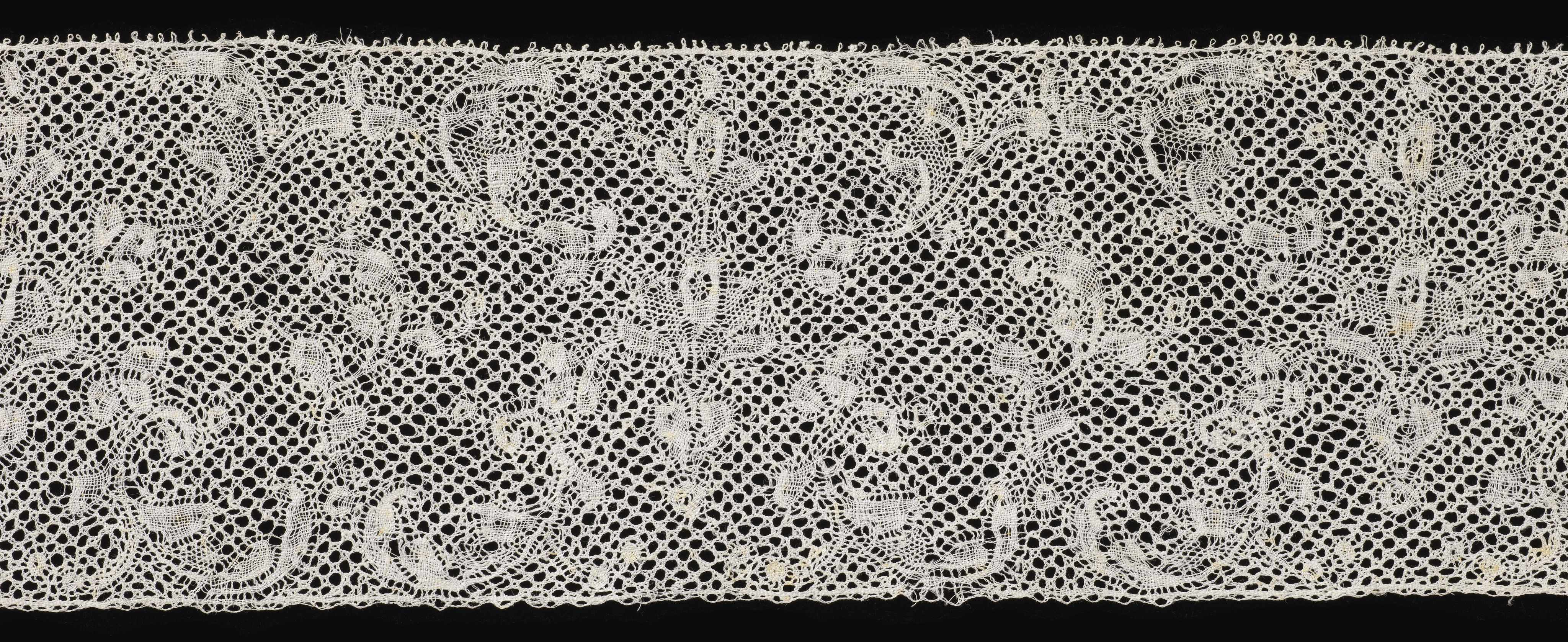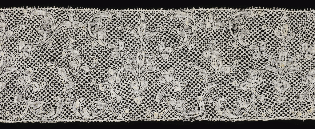 This is a Band. It is dated 19th century and we acquired it in 1933. Its medium is linen and its technique is bobbin lace, binche style with binche ground. It is a part of the Textiles department.