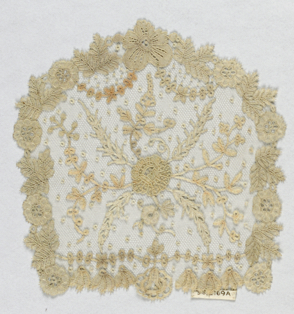 This is a Accessory (2). It is dated 19th century and we acquired it in 1933. Its medium is linen and its technique is bobbin and needle lace applique on net. It is a part of the Textiles department.