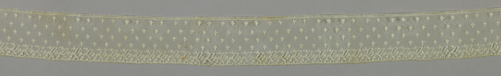 This is a Border. It is dated late 18th century and we acquired it in 1933. Its medium is linen and its technique is bobbin lace, mechlin style. It is a part of the Textiles department.