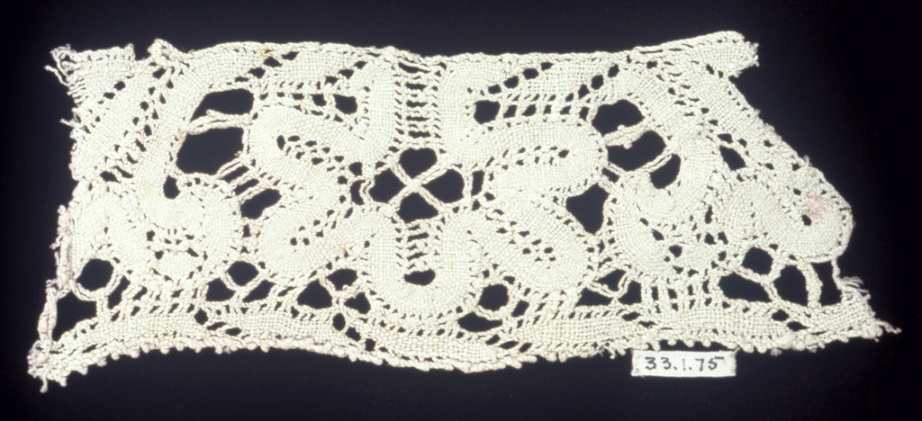This is a Fragment. It is dated early 20th century and we acquired it in 1933. Its medium is linen and its technique is bobbin lace, peasant style. It is a part of the Textiles department.