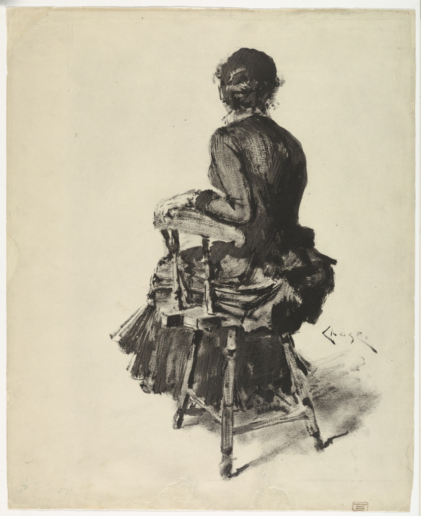 Drawing, Woman Seated; William Merritt Chase (American, 1849 – 1916); USA; brush and black ink on off-white wove paper; 42.4 × 34.3 cm (16 11/16 × 13 1/2 in.); Gift of the Cooper Union Day Art School; 1933-8-1