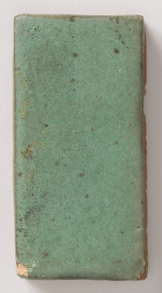 Tile (USA); Manufactured by Enfield Pottery and Tile works; terra cotta, white slip, green glaze; L x W x D: 4.9 x 10 cm (1 15/16 x 3 15/16 in.); Gift of Alicia Kelly Hogan; 1935-21-3