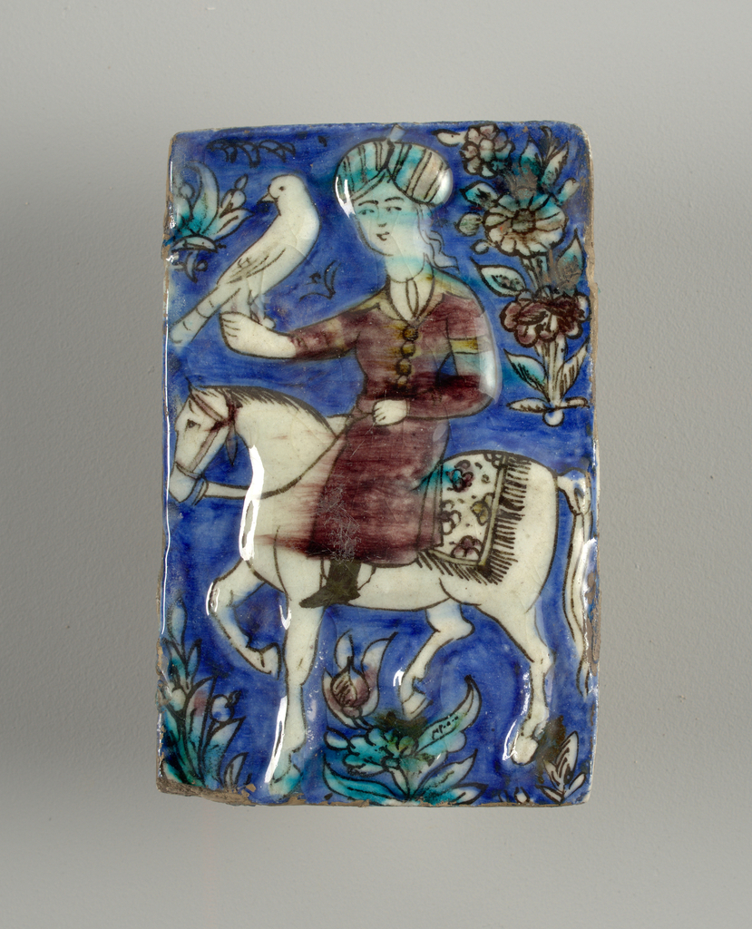 Tile (Iran); glass-glazed earthenware, underglaze decoration; H x W x D: 1.8 x 10.8 x 17.3 cm (11/16 x 4 1/4 x 6 13/16 in.); Gift of Mrs. Montgomery Hare; 1936-51-4
