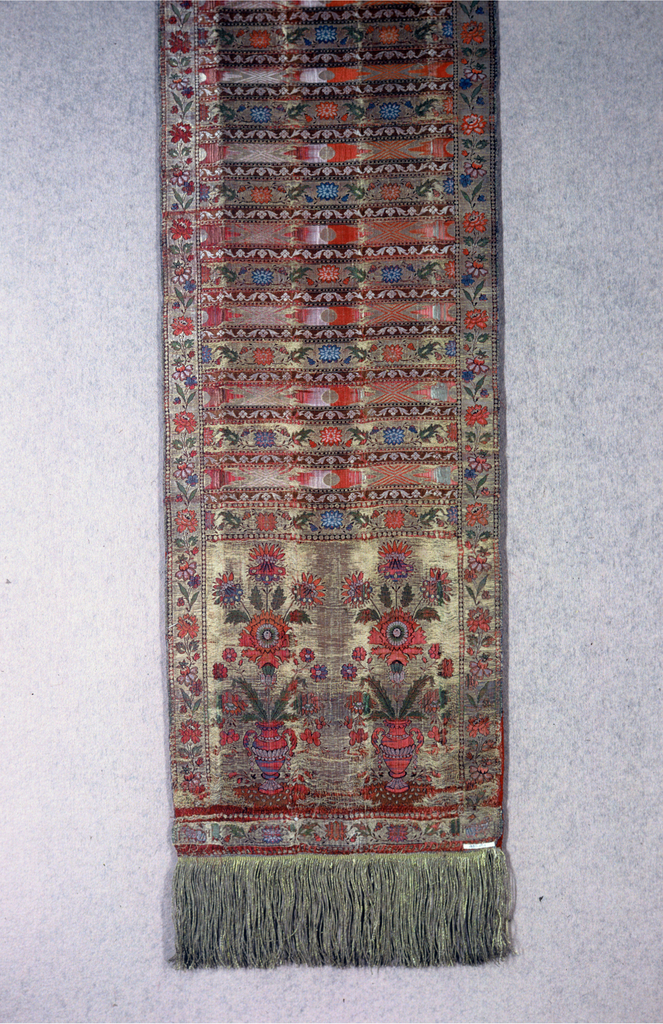 Man's Sash (kontush Sash) (Poland); Workshop of Jakub Paschalis Jakubowicz ((Polish, 1736–1817)); silk, metallic thread; H x W: 412.8 × 35.5 cm (13 ft. 6 1/2 in. × 14 in.); Museum purchase through gift of Mrs. John Innes Kane; 1937-17-1
