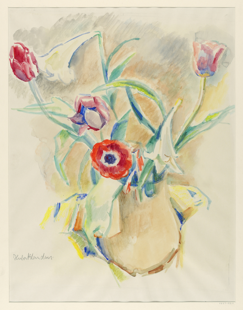 Drawing, Still Life with Tulips and Lilies; USA; brush and watercolor on paper; Mat opening: 32.8 × 39.1 cm (12 15/16 × 15 3/8 in.); Gift of Florence Cole; 1937-53-1