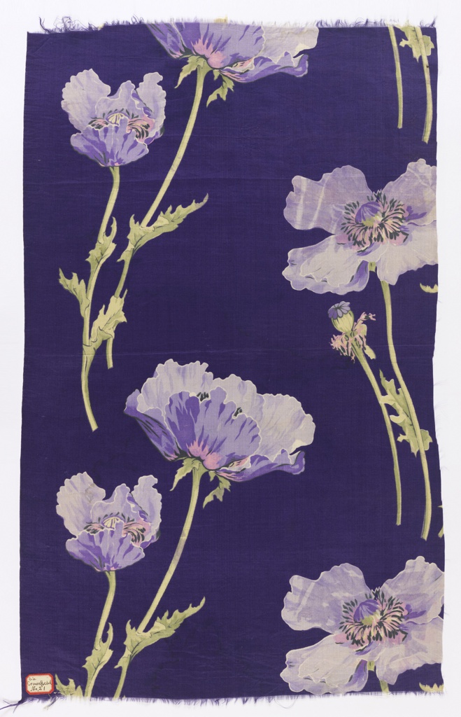 This is a Textile. It was designed by Sophia L. Crownfield and manufactured by Cheney Brothers. It is dated early 20th century and we acquired it in 1937. Its medium is silk and its technique is printed on plain weave. It is a part of the Textiles department.