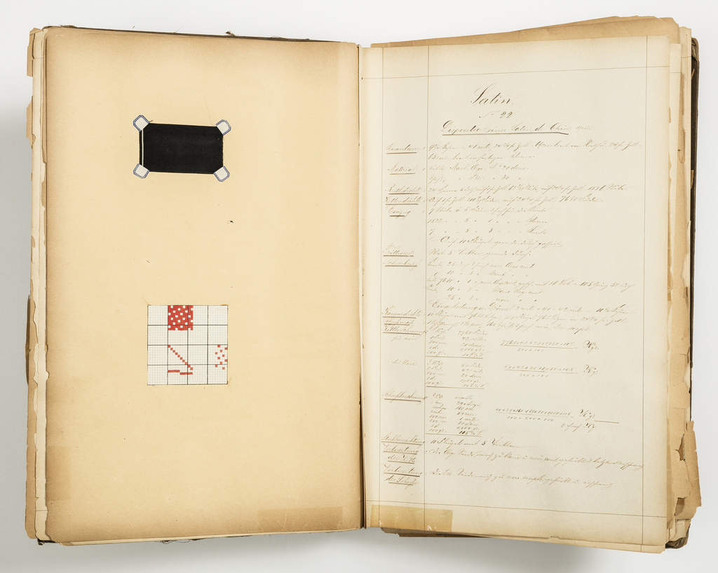 This is a Weaver's thesis book. It is dated 19th century and we acquired it in 1938. Its medium is buckram, paper. It is a part of the Textiles department.