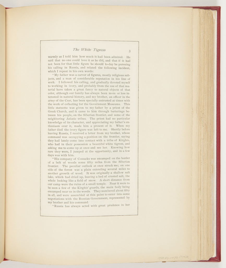 Ephemera, Excerpt from The White Tigress from Illustrations for Short Stories: A Magazine of Fact and Fiction (XIX, No. 1, May 1895, p. 3, 4)