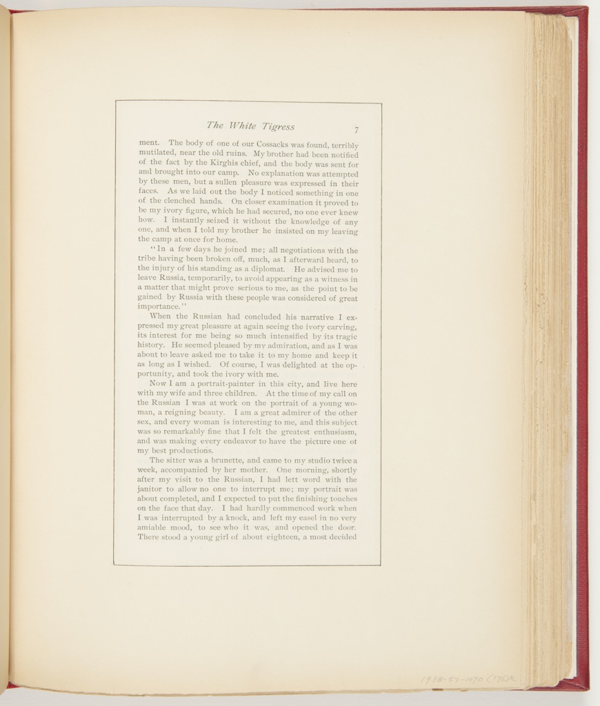 Ephemera, Excerpt from The White Tigress from Illustrations for Short Stories: A Magazine of Fact and Fiction (XIX, No. 1, May 1895, p. 8, 9)