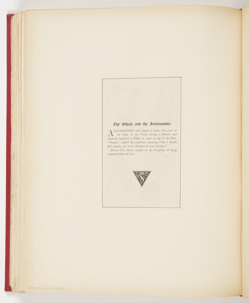 Ephemera, The Whale and the Salamander; Written by George Thomas Lanigan (Canadian, 1846 - 1886); Illustrated by Frederick Stuart Church (American, 1842–1924); Collected by Dr. Dudley Tenney (New York City); USA; printed in black ink on paper; 30.2 × 23.5 cm (11 7/8 × 9 1/4 in.); Bequest of Erskine Hewitt; 1938-57-1070-186