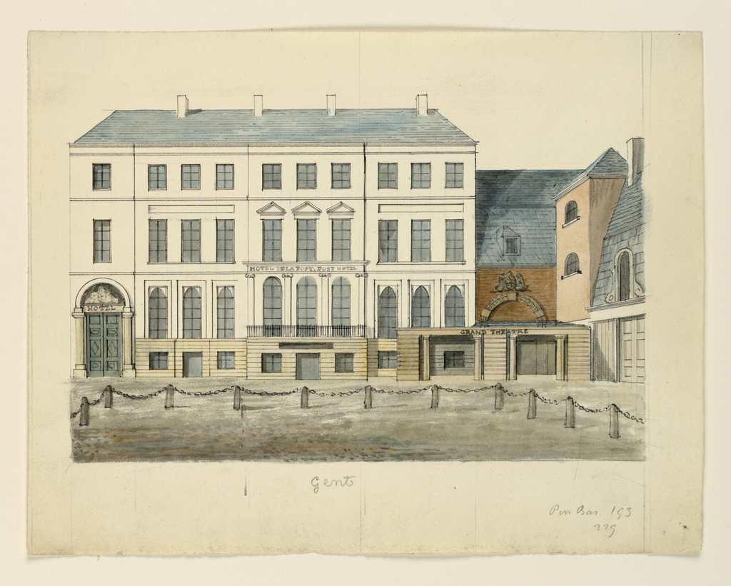 Drawing, Elevation of a Town Square Showing Facade of the Theater