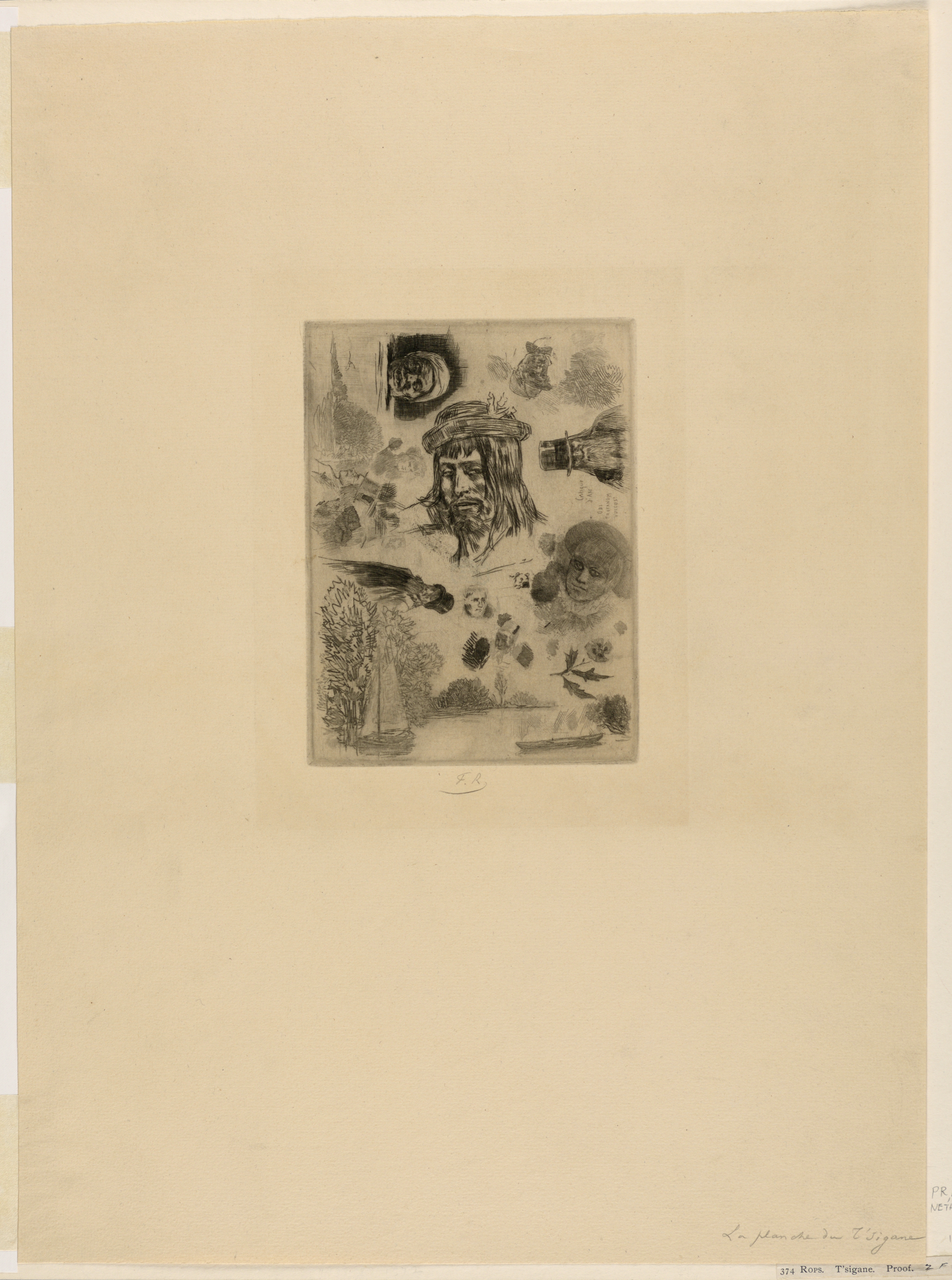 Print, La planche de Tzigane; Print Maker: Félicien Rops (Belgian, 1833 - 1898); Netherlands; etching in dark brown ink on cream colored paper (proof state); Bequest of Erskine Hewitt; 1938-57-1572