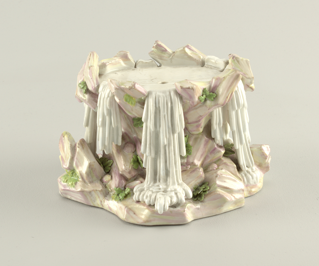 This is a pedestal. It was probably Buen Retiro Manufactory. We acquired it in 1938. Its medium is porcelain. It is a part of the Product Design and Decorative Arts department.