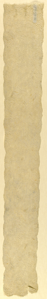 This is a Cap streamers. It is dated 18th century and we acquired it in 1938. Its medium is linen and its technique is bobbin lace, binche ground. It is a part of the Textiles department.