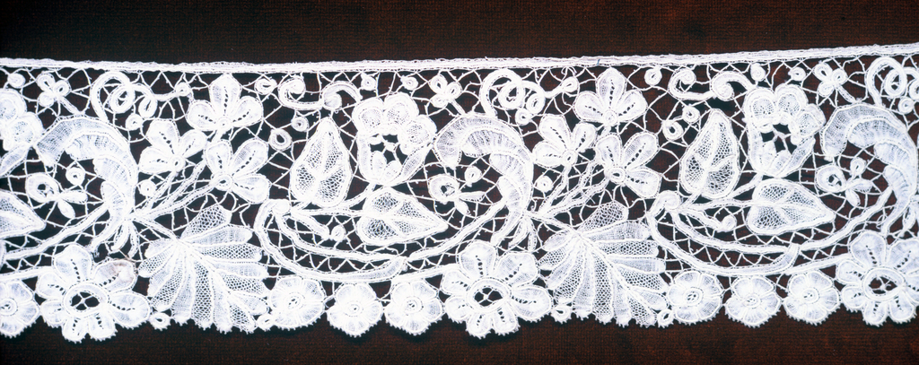 This is a Border. It is dated 19th century and we acquired it in 1938. Its medium is linen and its technique is bobbin lace, brussels style. It is a part of the Textiles department.