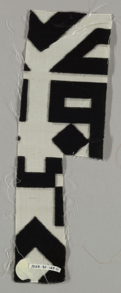 This is a Sample. It is dated ca. 1925 and we acquired it in 1938. Its medium is silk and its technique is cut and voided supplementary warp pile (velvet) in a taffeta ground. It is a part of the Textiles department.