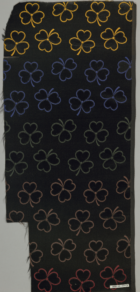 This is a Textile. It is dated ca. 1919 and we acquired it in 1938. Its medium is silk and its technique is cut and voided supplementary warp pile (velvet) in a satin foundation. It is a part of the Textiles department.