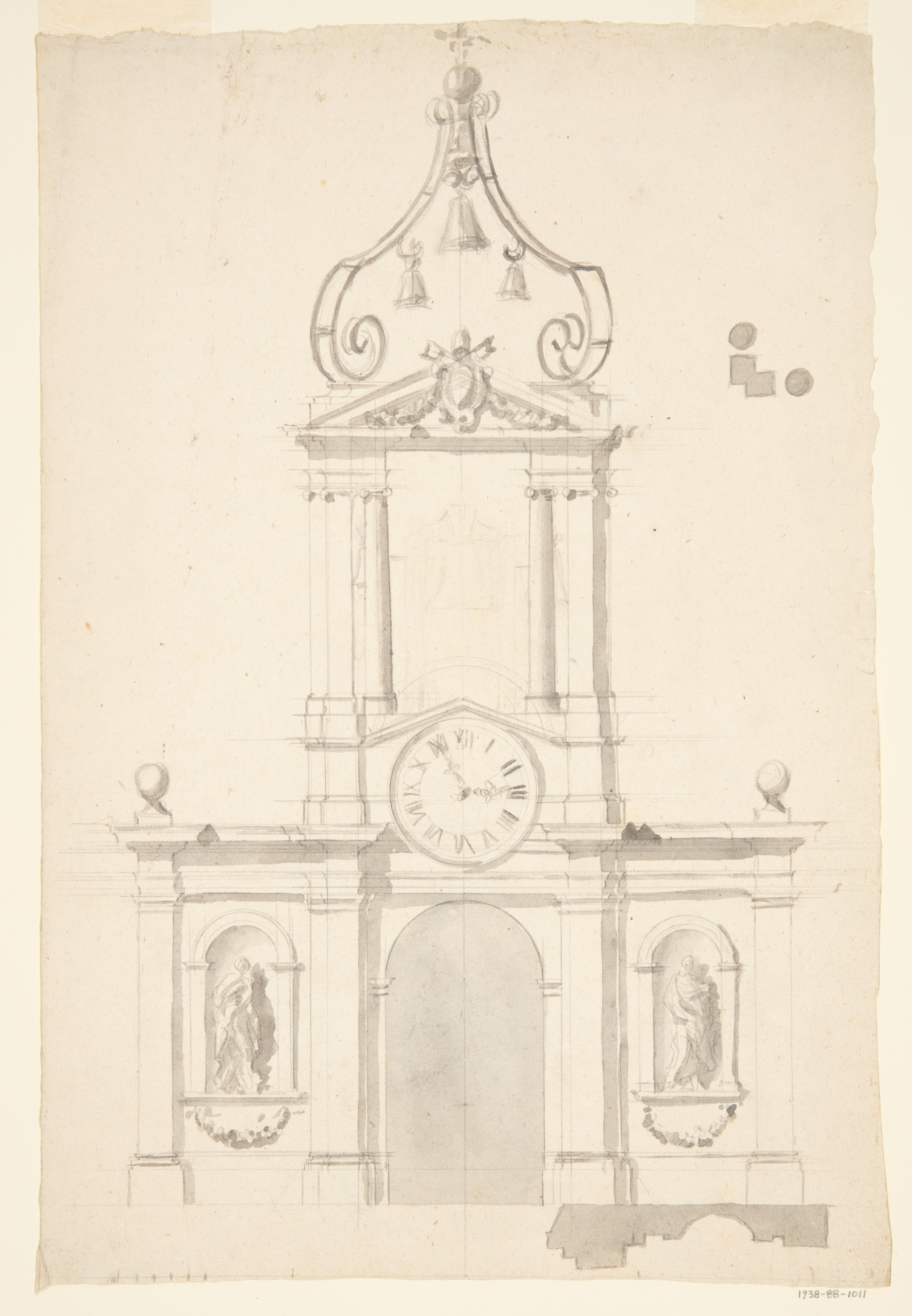 This is a Drawing. It was architect: Giuseppe Valadier. It is dated 1775 and we acquired it in 1938. Its medium is graphite, gray wash support: laid paper. It is a part of the Drawings, Prints, and Graphic Design department.