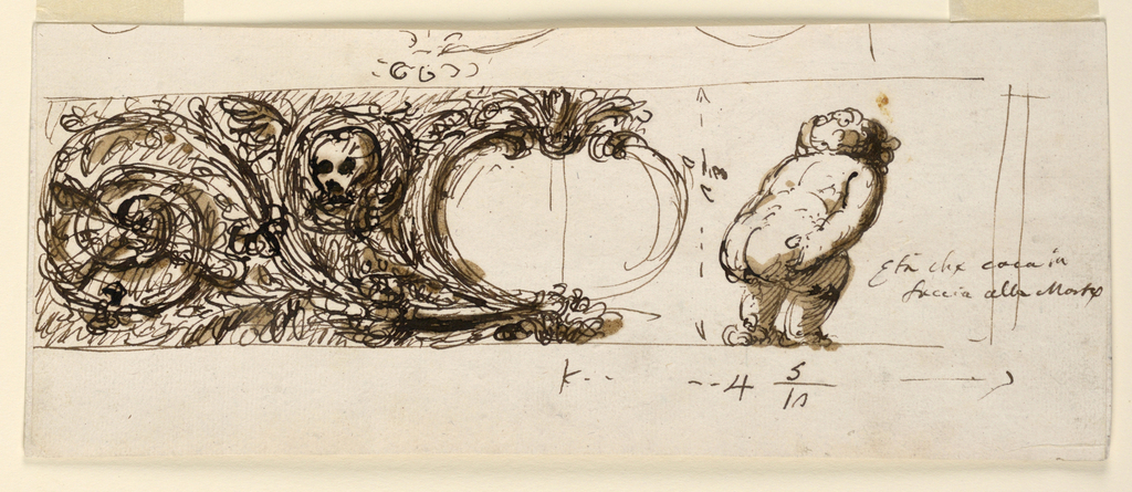 Drawing, Design for a Frieze: "Time"; Designed by Giuseppe Barberi (Italian, 1746–1809); Italy; pen and brown ink, brush and brown wash on off-white laid paper, lined; Image: 11 x 27.2 cm (4 5/16 x 10 11/16 in.); Museum purchase through gift of various donors and from Eleanor G. Hewitt Fund; 1938-88-1886