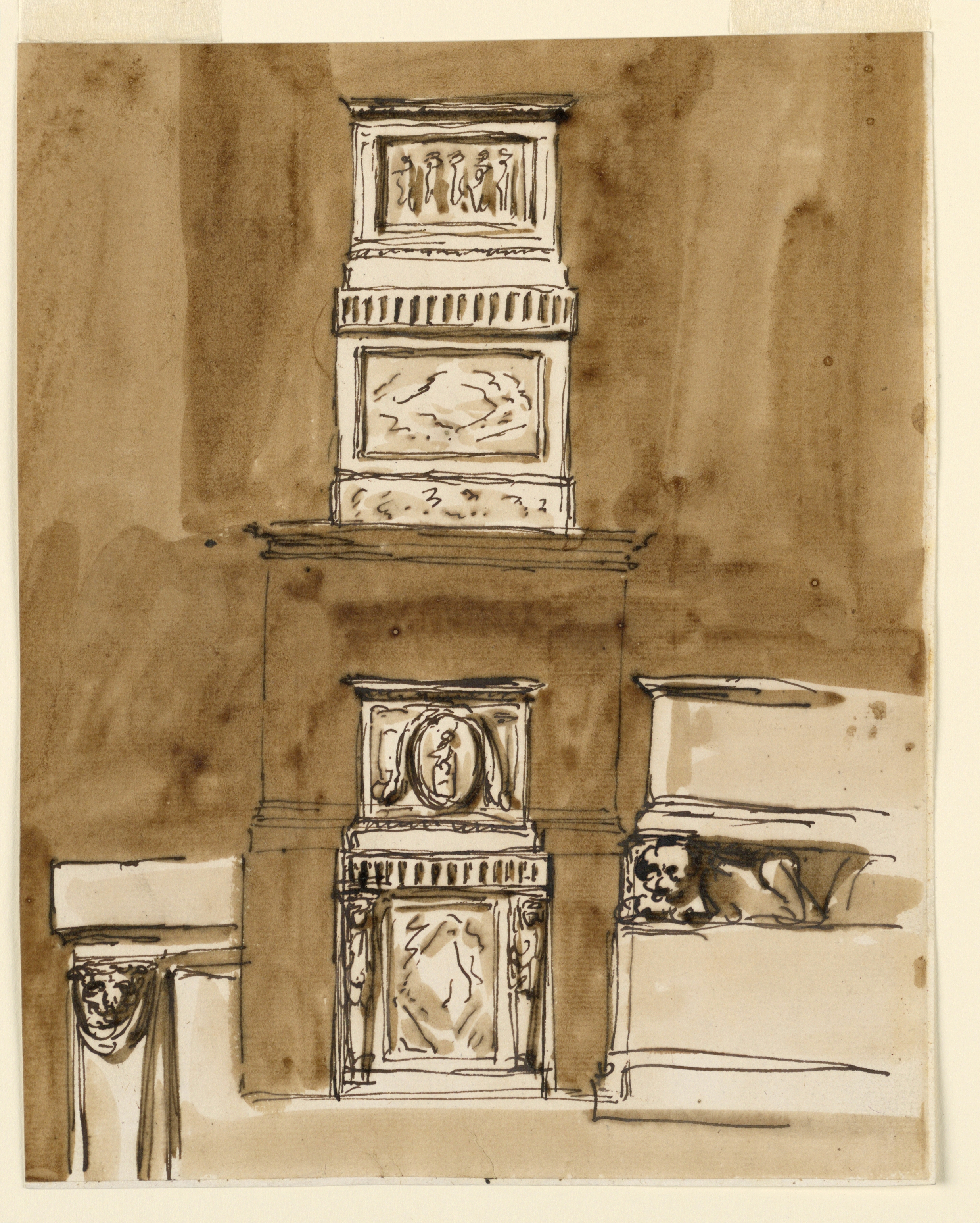 This is a Drawing. It was designed by Giuseppe Barberi and architect: Giuseppe Barberi. It is dated ca. 1790 and we acquired it in 1938. Its medium is pen and brown ink, brush and brown wash on off-white laid paper, lined. It is a part of the Drawings, Prints, and Graphic Design department.