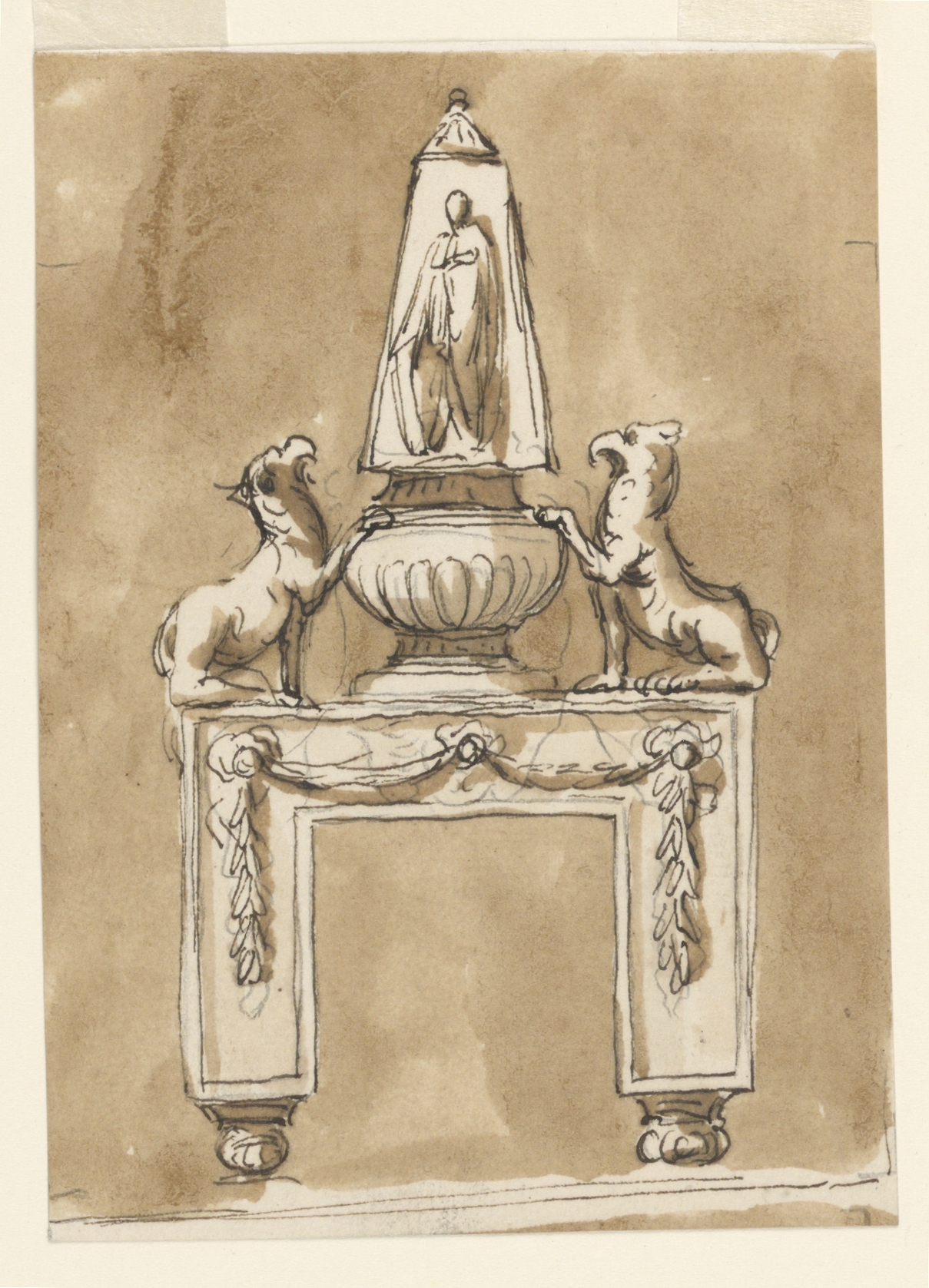 Drawing, Fender; Designed by Giuseppe Barberi (Italian, 1746–1809); Italy; pen and brown ink, brush and brown wash, graphite on off-white laid paper; Image: 13 x 9.4 cm (5 1/8 x 3 11/16 in.); Museum purchase through gift of various donors and from Eleanor G. Hewitt Fund; 1938-88-1962